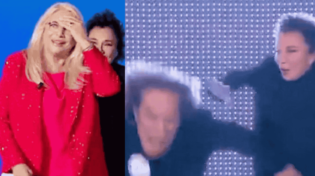 L’incidente si è verificato durante l’ingresso degli ospiti in studio, a causa di un gradino posizionato all’accesso del palco. I due artisti hanno perso l’equilibrio e sono finiti a terra, generando attimi di tensione tra il pubblico e lo staff del programma.