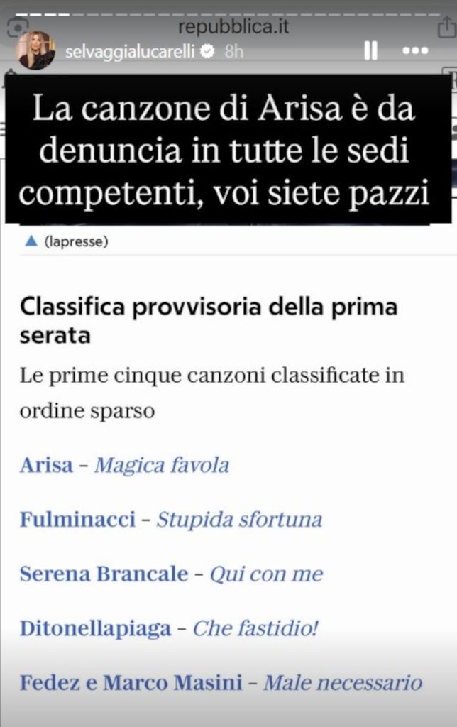 Arisa, con la sua voce inconfondibile e il suo carisma, ha sempre avuto un posto speciale nel cuore del pubblico. Tuttavia, la sua ultima canzone, presentata a Sanremo, ha sollevato un polverone. Lucarelli, che non ha risparmiato parole, ha definito la canzone “da denuncia in tutte le sedi competenti”, un’affermazione che ha colpito come un fulmine a ciel sereno. La sua analisi è stata spietata: “La canzone sembra presa da una di quelle compilation di musica sacra moderna focolarina”, ha scritto, evidenziando una mancanza di originalità e di evoluzione artistica. Per Lucarelli, Arisa non è riuscita a portare sul palco la freschezza e la profondità che ci si aspetterebbe da un’artista del suo calibro.