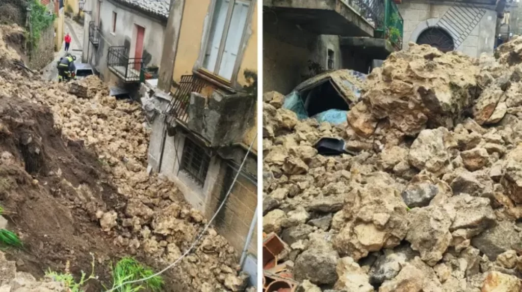 La frana ha colpito diverse vetture parcheggiate e ha raggiunto un’abitazione, generando forte preoccupazione tra i residenti.