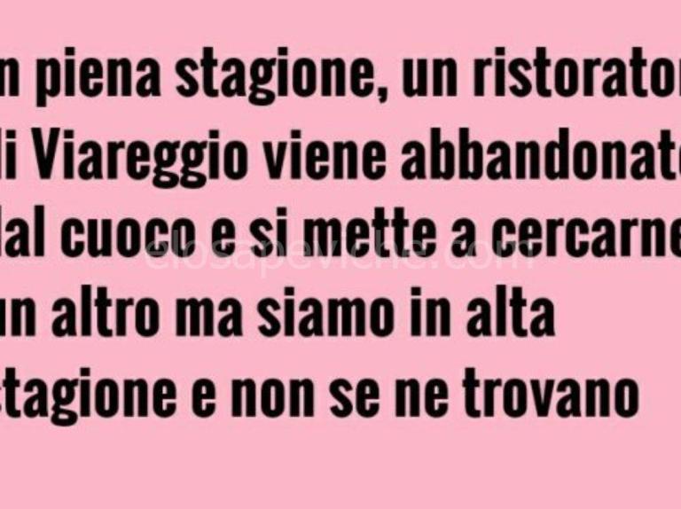 In piena stagione, un ristoratore di Viareggio viene abbandonato dal cuoco e si mette a cercarne un altro d’urgenza, ma siamo in alta stagione e non se ne trovano.