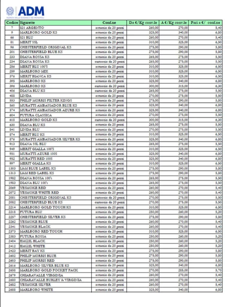 Con il nuovo listino, il prezzo medio di un pacchetto di sigarette in Italia si avvicina sempre più alle soglie più alte d’Europa. Per chi acquista un pacchetto al giorno, l’aumento può tradursi in una spesa annua maggiore di 70-100 euro, a seconda della marca scelta.