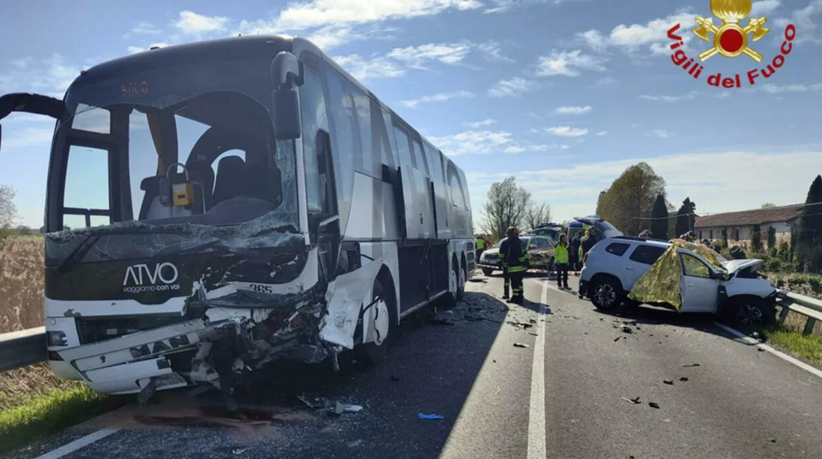 L’autista del pullman ha tentato una manovra disperata per evitare l’impatto, ma non c’è stato nulla da fare. Lo schianto è stato frontale e violentissimo. La parte anteriore dell’auto è stata completamente distrutta, mentre anche il bus ha riportato danni importanti.