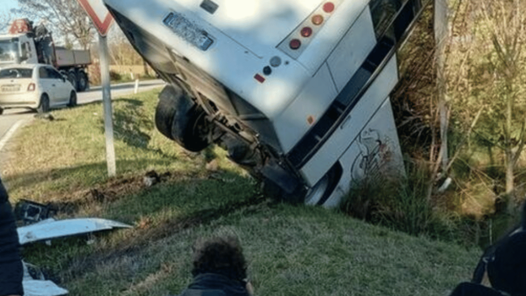 L’incidente è avvenuto attorno alle 15. Secondo una prima ricostruzione, ancora tutta da confermare, il pullman stava percorrendo la carreggiata quando si è trovato coinvolto in uno scontro con un’auto che procedeva in direzione opposta. L’impatto ha fatto perdere stabilità al mezzo pesante, che si è intraversato per poi finire fuori strada, fermandosi sul terrapieno laterale.